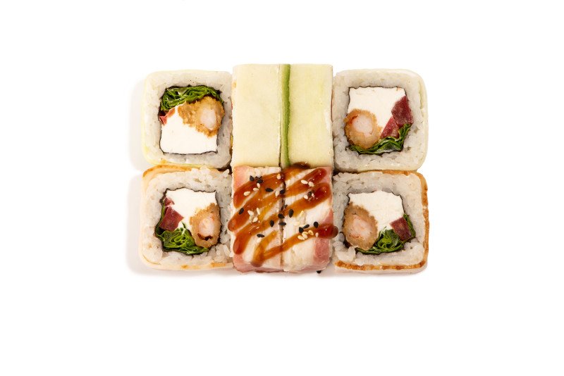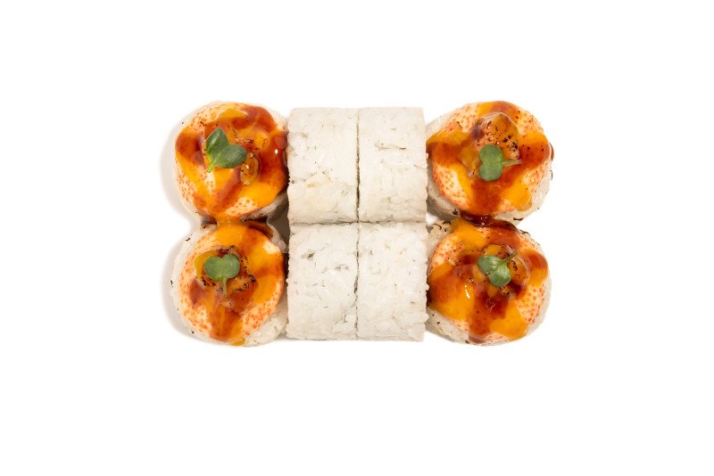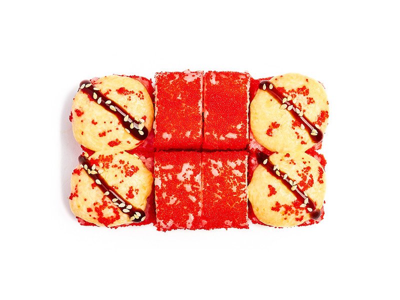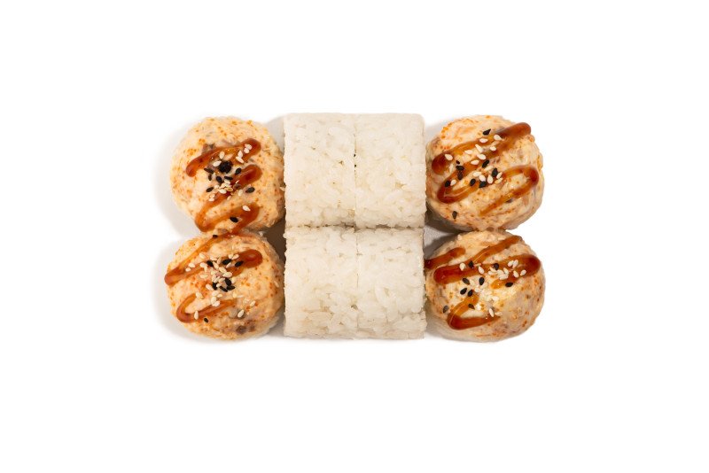 Ролл с запеченными мидиями310 гЗапечённый ролл с мидиями, сливочным сыром, огурцом и омлетом томаго, полит нежным сырным соусом и соусом унаги.