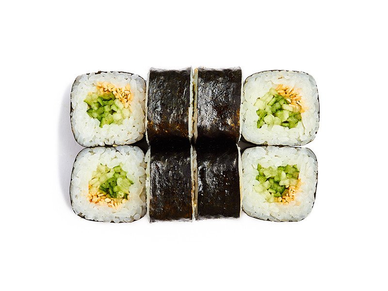 Классический ролл с сочным огурцом и обжаренным кунжутом.