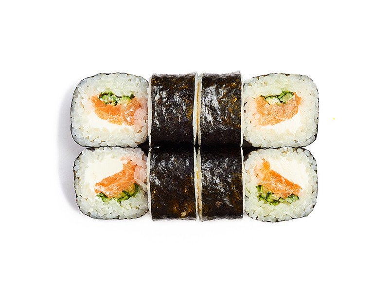 Классические роллы со сливочным сыром, сочным огурцом и начинкой на выбор.