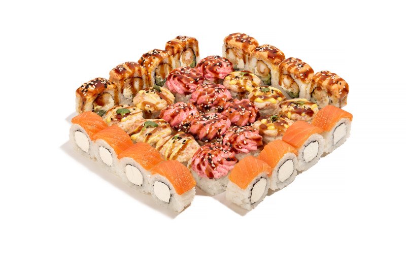 Филадельфия лайт,Нежный ролл с беконом,Лава Биг запеченая с креветкой,Сегун. В составе ОСТРЫЕ роллы!